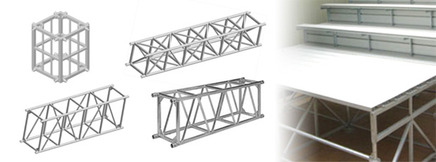 NO Dimension ( meter ) Max Span PCS 1 30 X 30 9 M 3 M 1 40 X 40 14 M 2-3-4 M 2 40 X 60 18 M 2-3-4 M 3 40 X 80 20 M 2-3-4 M 4 60 X 60 22 M 2-3-4 M 5 60 X 80 20 M 2-3-4 M 6 80 X 80 24 M 2-3-4 M 7 CONNECTOR SET SET 8 STAGE MODUL 1,22 X 2,44